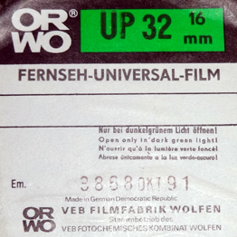 Film 16mm ORWO UP32 wyprodukowany w połowie lat 80. XX w., naświetlony i wywołany w październiku 2014 |