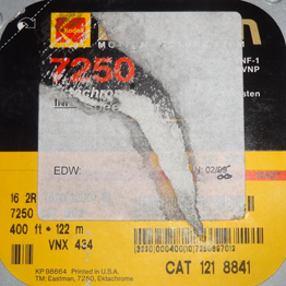 Film 16mm Kodak Eastman 7250 kolor, wyprodukowany w połowie lat 80. XX w., naświetlony i wywołany w procesie czarno - białym (tak!) w październiku 2014 |
