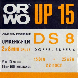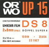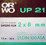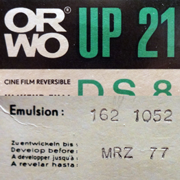 Najstarszy film, jaki do tej pory z sukcesem wywołałem. ORWO UP15 2x8mm z terminem ważności 1968 rok, a więc gdzieś z 1965 roku, wywołany w marcu 2015 roku - 50 lat! Co prawda okazało się, że jest nie naświetlony, o prawidłowym wywołaniu świadczy obecność fabrycznych napisów ORWO przy perforacji. Ciekawostką jest duże pudełko, jak do filmu 16mm (obok dla porównania pudełko od filmu DS8). |